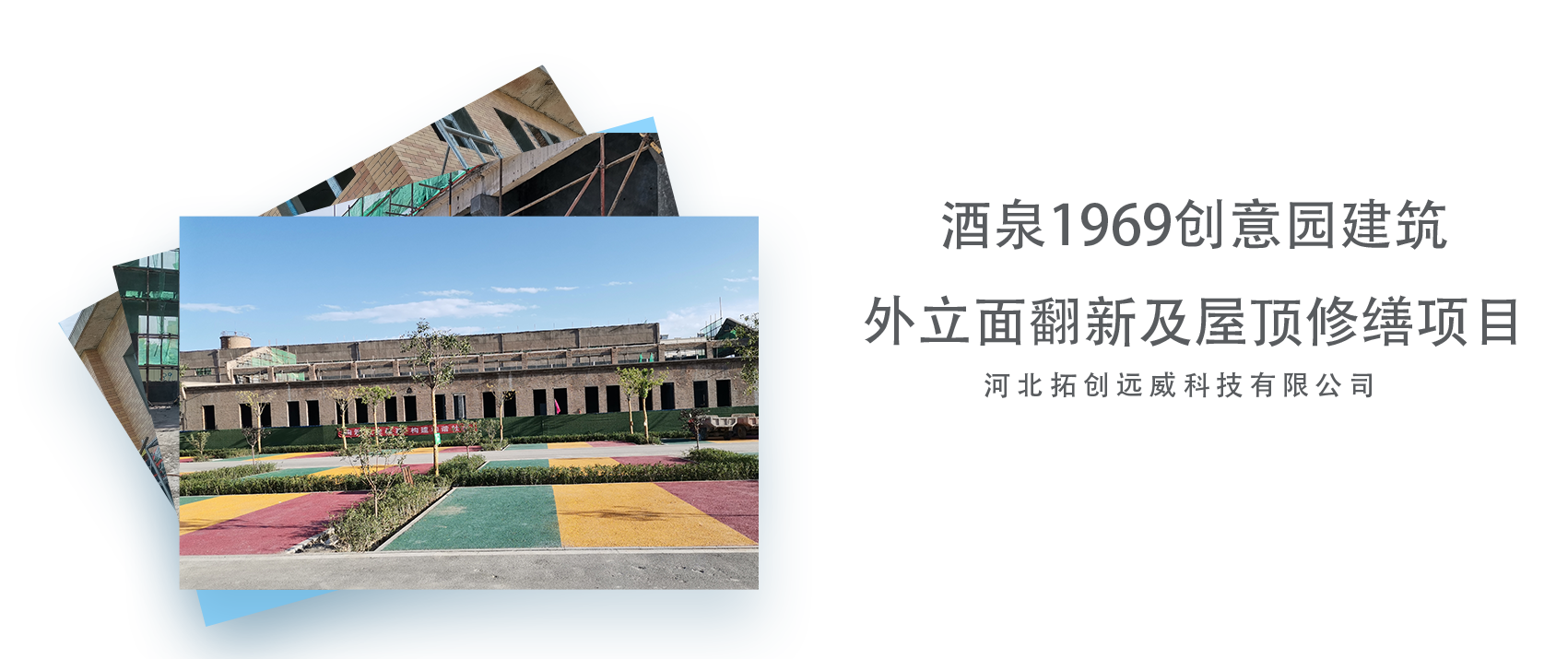酒泉1969创意园建筑外立面翻新及屋顶修缮项目,该项目建筑面积1620.29平方米,装饰装修展开面积约3700平方米。因屋面破损需进行翻新装饰,新屋面防水等级必须高于原防水设计。本项目改造原则为安全、节能、环保。